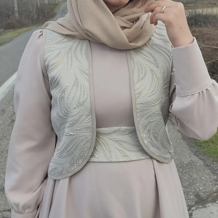 جنس پیراهن کرپ مازراتی جلیقه ژاکارد تمام لایه کوبیشده کار بسیار باکیفیت و خوش دوخت