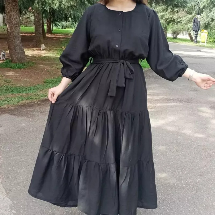پیراهن بلند طبقه ای دکمه دار